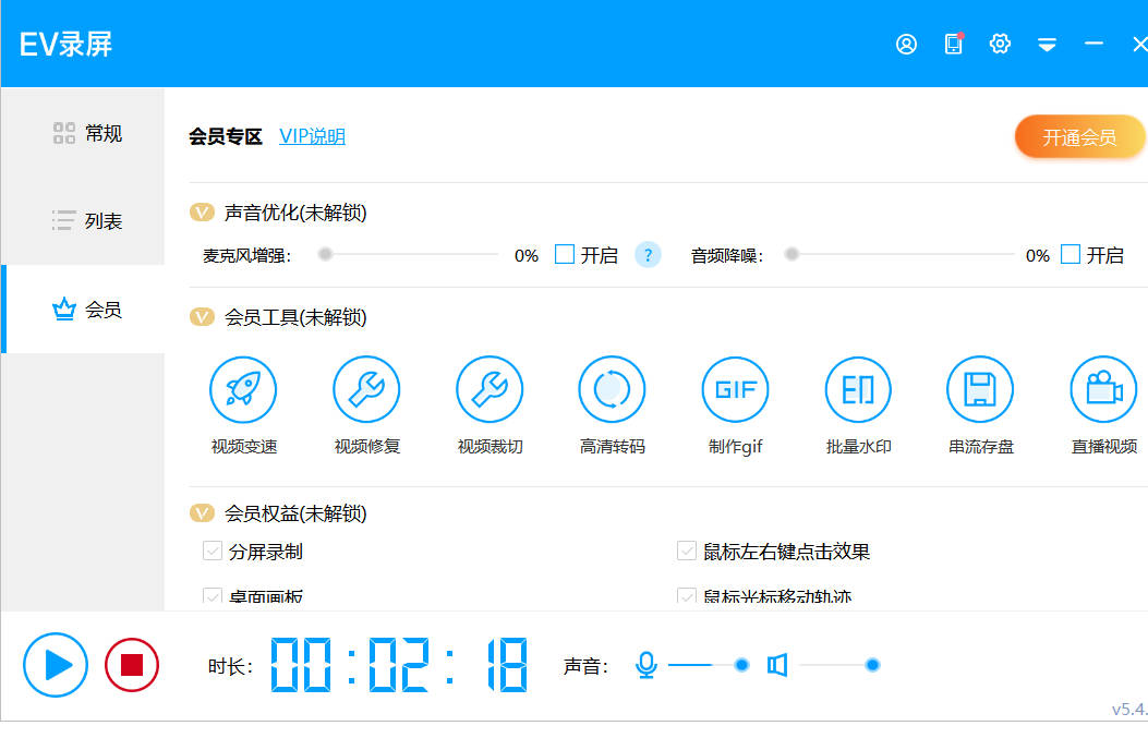 EV录屏虽然有会员功能,但是如果只是录屏的话完全够用的,录制几小时都没有问题。