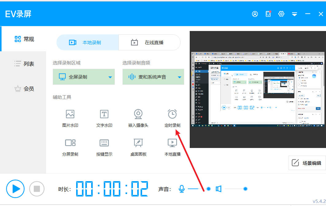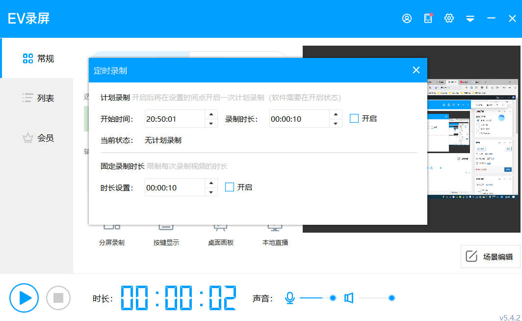 ev录屏录制的时候想让他自动停止录制,方法很简单,定时录制就可以了。