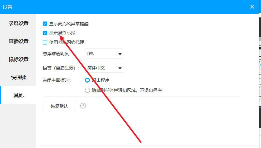 也可以点击设置-把显示悬浮小球点掉就行了,如果再让他显示点开就行了。